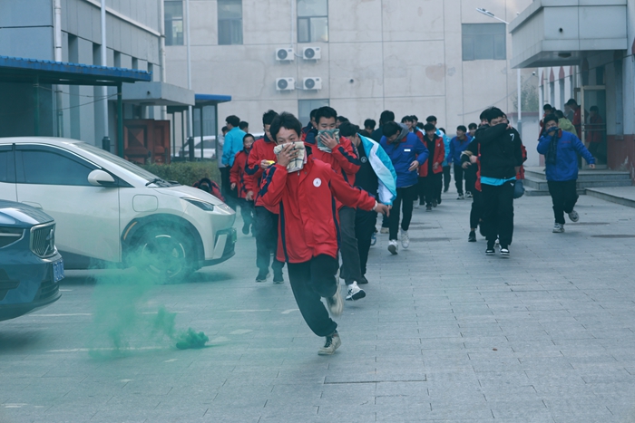 应急疏散演练与消防实操演练同步启动,检验师生应急反应能力。随着警报声响起,各班师生在现场工作人员的有序引导下,弯腰低姿、捂住口鼻,按照预设疏散路线快速有序撤离至校园安全区域。全程紧张有序、衔接顺畅,短时间便完成全员疏散集结。