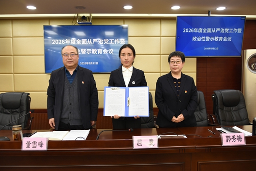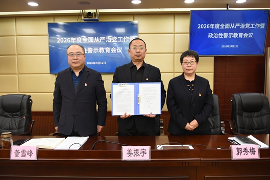 会上,党委书记董雪峰、纪委书记郭秀梅与党支部书记签订2026年度党风廉政建设承诺书,与中层干部签订2026年中层干部廉洁从政承诺书。与会人员集中观看了警示教育片《一步不停歇 半步不退让》第一集《纠风治乱为民》,大家纷纷表示,要以案为鉴,警钟长鸣,深刻汲取教训,不断增强纪法意识。